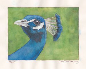 2019Een vriendin van mijn in Friesland houdt pauwen. Ze zijn prachtig maar lastig. Ze eten alles wat los en vast zit en vooral bloemen. Dus nu zijn de pauwen de kleur in de tuin.