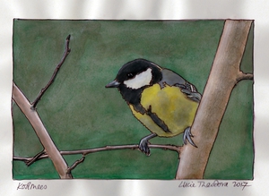 2017In je kleine stadstuin droom je van vogeltjes, die we met pinda's proberen te lokken, maar de kauwtjes en de duiven dringen altijd voor. Nu hebben we voederbakjes waar die grote vogels niet bij kunnen.